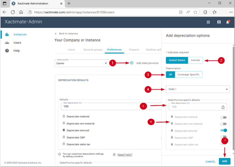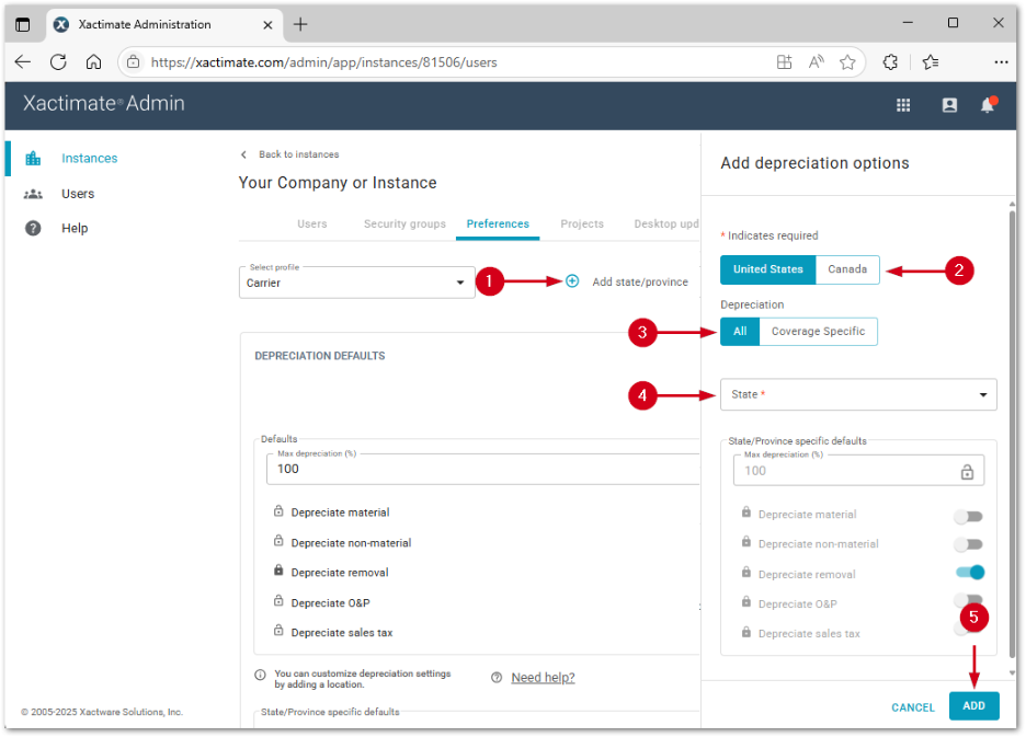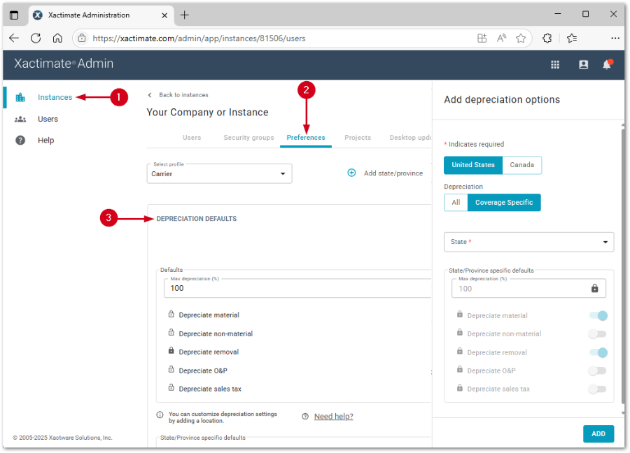 - In the opening page of Xactimate Admin, select Instances from the menu on the left side of the screen