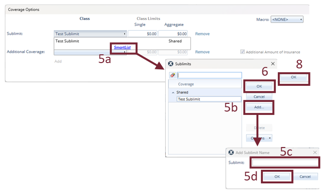 - Select the appropriate sublimit or select it from the SmartList, or create a new sublimit by completing the following: