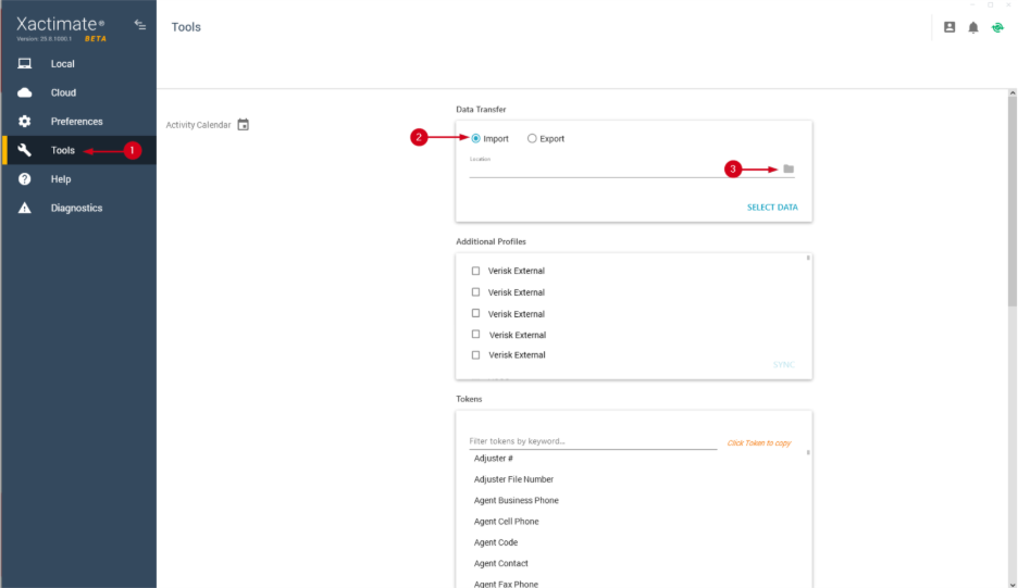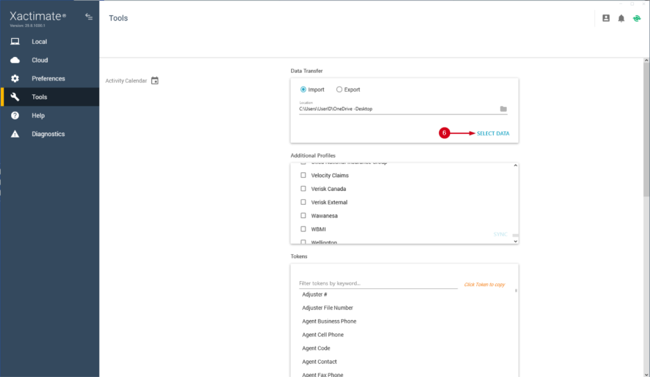 Important: Data Transfer is not available for all users. If you do not see it, contact your instance administrator to update your security group in Xactimate Admin.