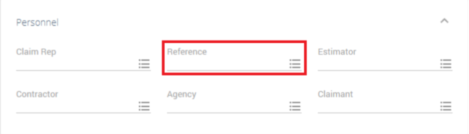 When this profile feature is turned on, the Reference field is visible in the Personnel box, which is in the Claim Info tab of an open estimate.