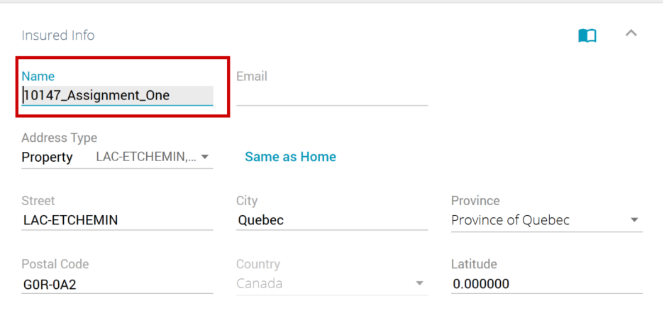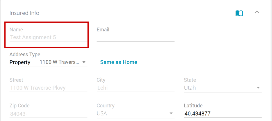 When this profile feature is turned on, the Name field in Claim Info > Insured Info is editable in assignments.