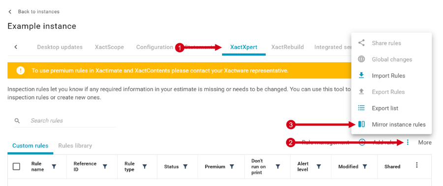- Navigate to the XactXpert tab from either the Profiles or Instances page in Xactimate Admin.