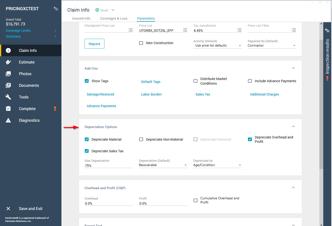 - Depreciate overhead and profit: If this option is selected, depreciation can be applied to overhead and profit.