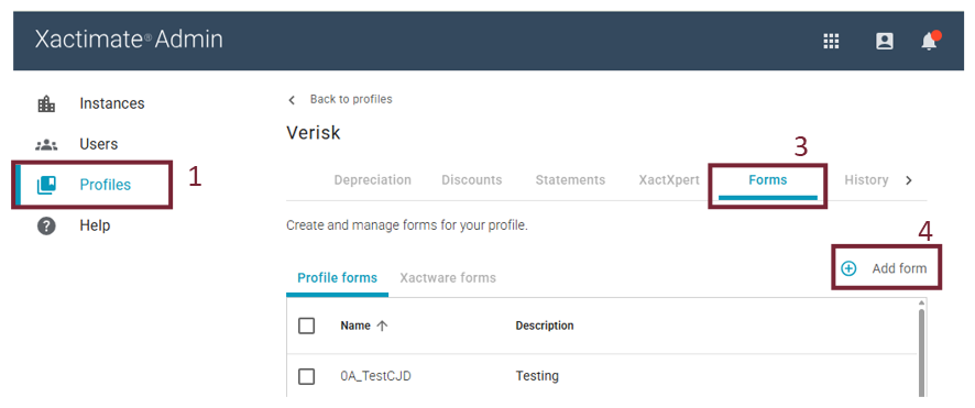 Create profile forms in Xactimate Admin