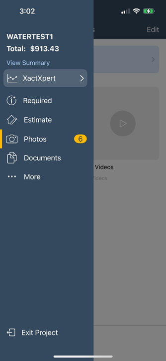 Para acceder a la generación de texto de IA desde un proyecto, seleccione Fotos en el menú de navegación. Si es la primera vez que accede a Fotos con esta función habilitada, aparece una pantalla de información con una descripción de alto nivel del etiquetado de IA de Xactimate. Cuando haya terminado de revisar la información, seleccione Listo.