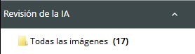 Cuando el texto de IA esté listo para revisión, vuelva a abrir la página de Fotos (si aún no está abierta). En la sección Revisión de IA, seleccione la carpeta Todas las imágenes para abrir el panel Revisión de IA. Para su comodidad, Xactimate incluye el número de fotos con texto generado por IA junto al nombre de la carpeta.