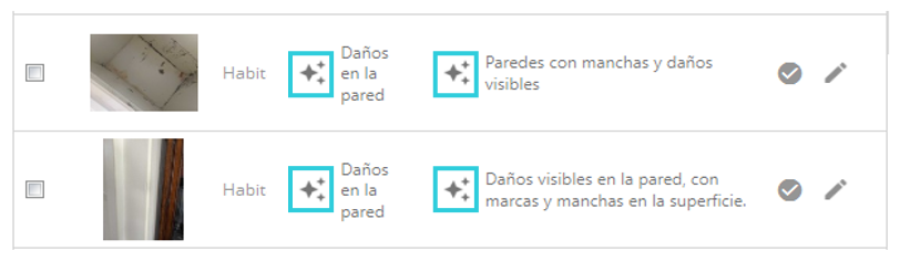 Debe revisar y aprobar (o editar) todo el contenido que incluya este icono (todo el contenido generado por IA) antes de completar el proyecto, o de lo contrario Xactimate lo oculta.